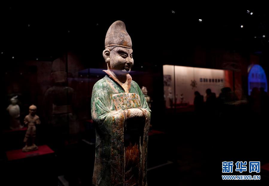 西安博物院“乐居长安—唐都长安人的生活”展上展出的文官俑(1月20日摄)。 新华社记者 刘潇 摄