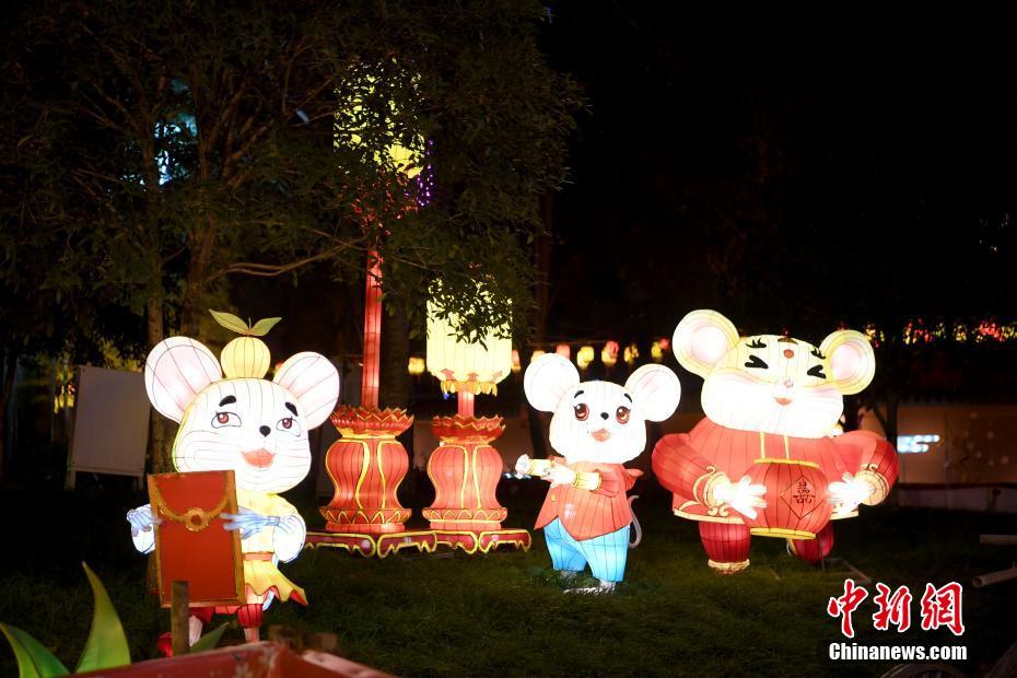 1月21日晚,“2020武侯祠成都大庙会”全面试灯。伴随着夜幕降临,成都武侯祠博物馆耗时两个多月精心准备的十余组大型彩灯和上万盏精致宫灯同时点亮。图为鼠元素灯组。安源 摄