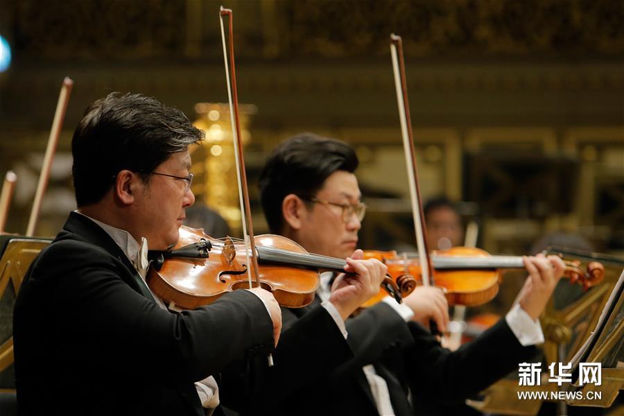 1月20日,在罗马尼亚首都布加勒斯特雅典娜音乐厅,中国爱乐乐团演奏家在新春音乐会上进行表演。新华社发(克里斯泰尔 摄)