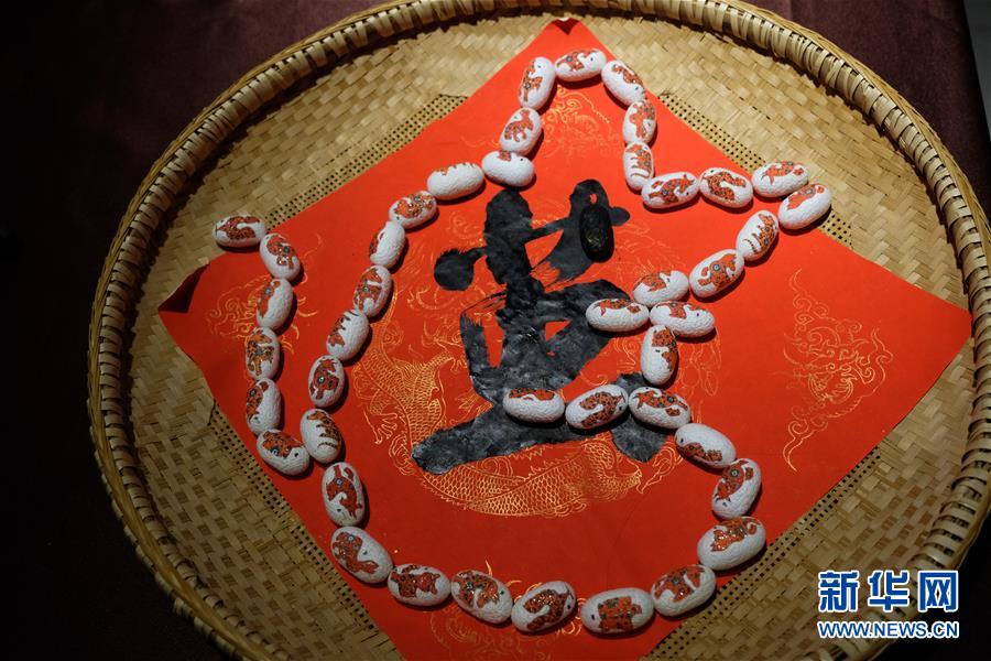 1月24日拍摄的鼠年特色茧画。 农历鼠年将至,浙江省桐乡市“江南茧画”工艺创始人陈建清与同事们创作了一批鼠年特色茧画,迎接新春佳节的到来。“江南茧画”运用天然蚕茧作原料,用烘、染、固化、绘、艺术组合等处理,创作出极具水乡特色的蚕茧画作品。 新华社记者 徐昱 摄