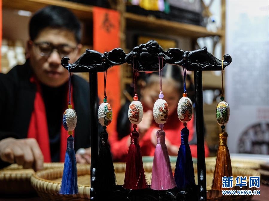 1月24日拍摄的创作好的特色茧画。 农历鼠年将至,浙江省桐乡市“江南茧画”工艺创始人陈建清与同事们创作了一批鼠年特色茧画,迎接新春佳节的到来。“江南茧画”运用天然蚕茧作原料,用烘、染、固化、绘、艺术组合等处理,创作出极具水乡特色的蚕茧画作品。 新华社记者 徐昱 摄