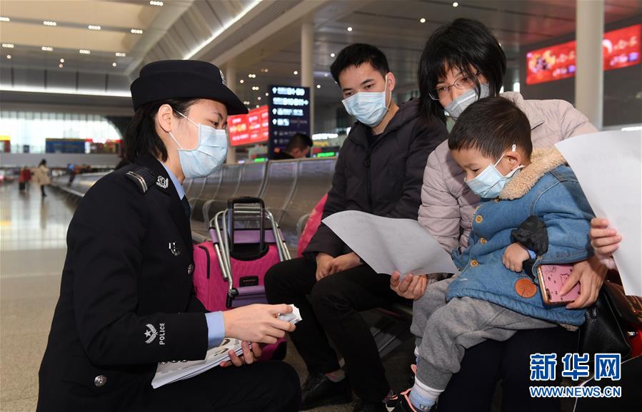 2月4日,花子惠(左一)在广西南宁东站将自己画的漫画送给旅客。 南宁铁路公安处女民警花子惠出生于1998年,业余爱好是画漫画。2019年入警以来,她经常通过漫画的形式宣传铁路安全知识,被大家称为“漫画警花”。近期,随着春运返程客流增多,南宁铁路公安处通过各种形式防控疫情。花子惠也拿起画笔,创作相关的主题漫画,向旅客宣传疫情防控知识。 新华社记者 陆波岸 摄