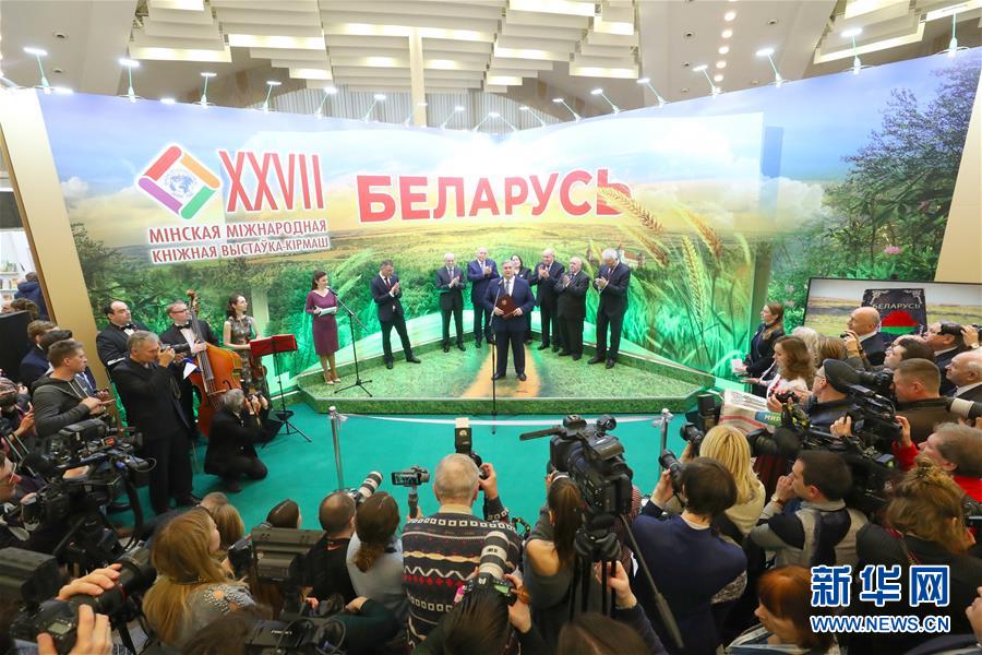 2月5日,在白俄罗斯首都明斯克,人们参加国际书展开幕式。 当日,第27届明斯克国际书展在明斯克开幕,来自30个国家的约400家出版机构参展。 新华社发(任科夫 摄)