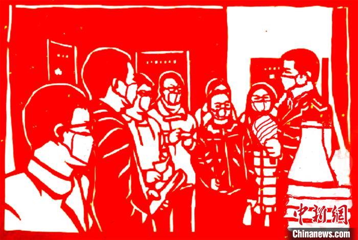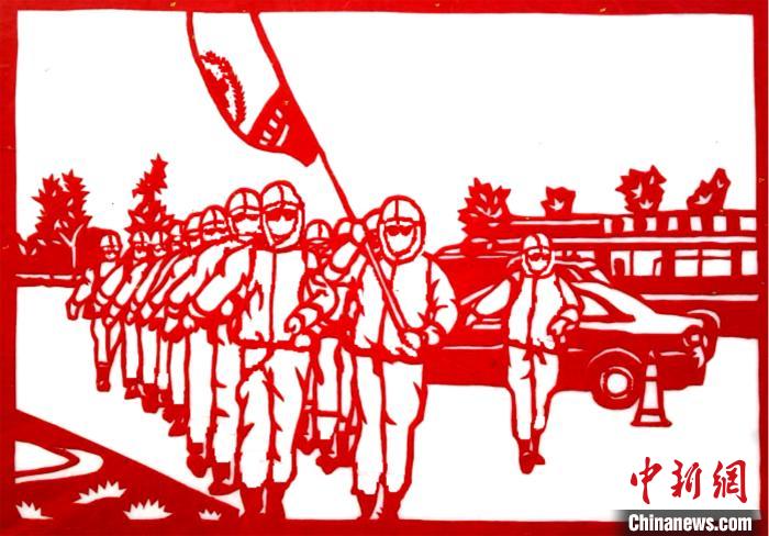 图为剪纸作品中的医护人员正在出发奔赴一线支持抗疫。 受访者供图