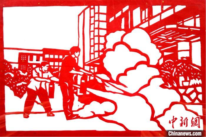近日,重庆市九龙坡区的民间文艺家黄钢用非遗剪纸技艺创作出多幅抗击疫情的剪纸作品,内容包括奔赴一线、喷洒消毒水、联防联控等图案。