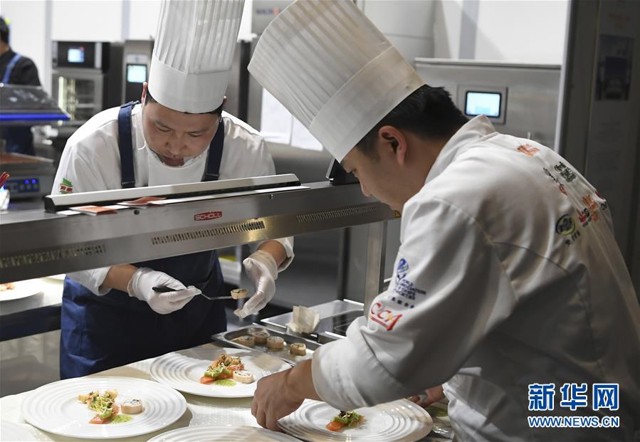 2月18日,在德国斯图加特举行的第25届世界奥林匹克烹饪大赛上,中国国家烹饪队的队员参加“国家厨房”团体赛。 为期6天的第25届世界奥林匹克烹饪大赛19日在德国斯图加特落幕。中国队不仅在比赛中取得佳绩,更向世界传递了可持续发展理念。 新华社记者 逯阳 摄