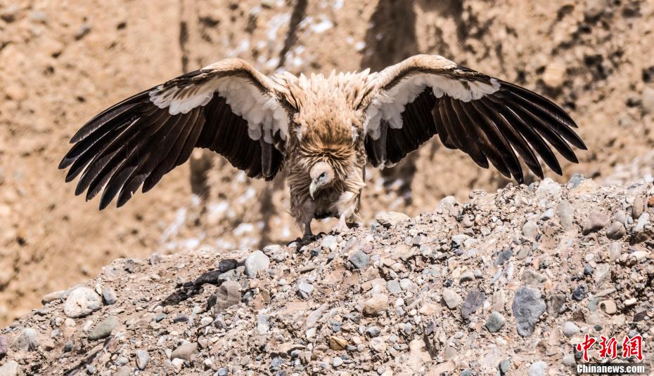 图为高山兀鹫寻觅食物。 功霸扎西达杰 摄