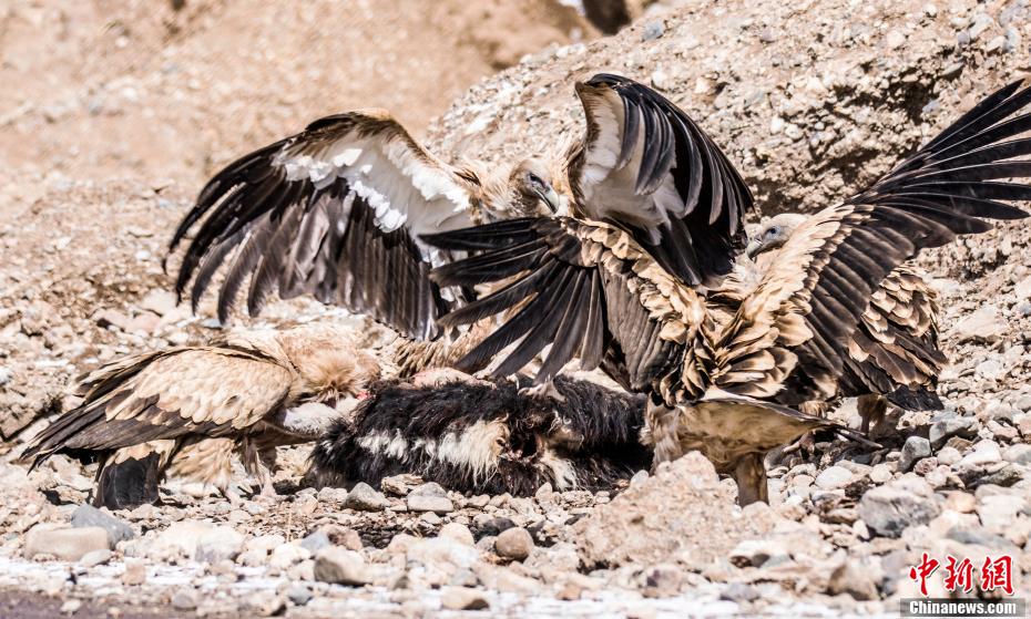 图为多只高山兀鹫嬉戏。 功霸扎西达杰 摄