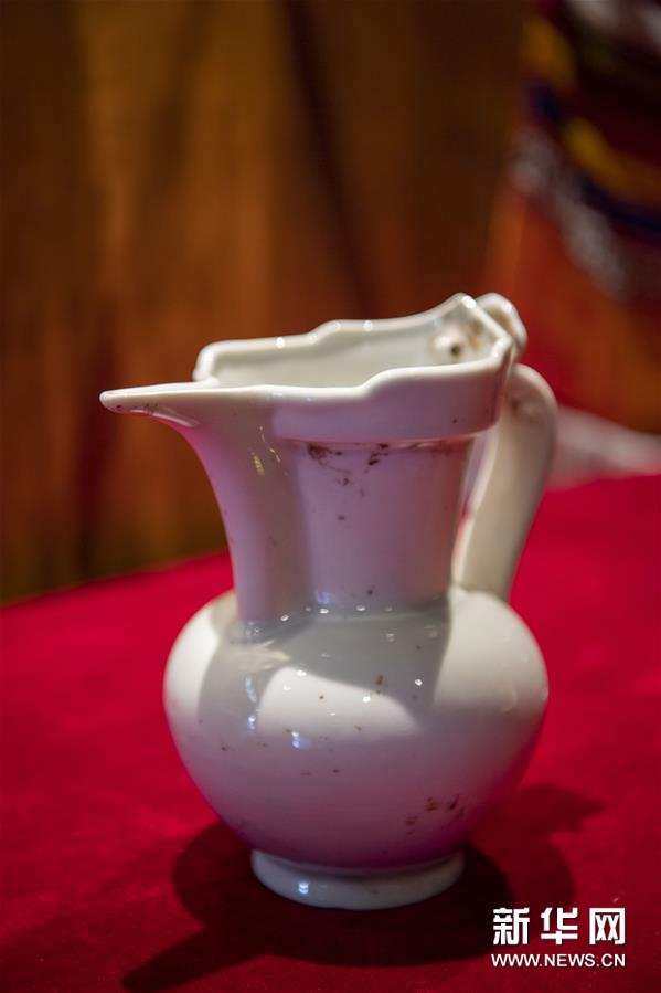 布达拉宫馆藏文物瓷制僧帽壶(3月9日摄)。新华社记者 孙非 摄