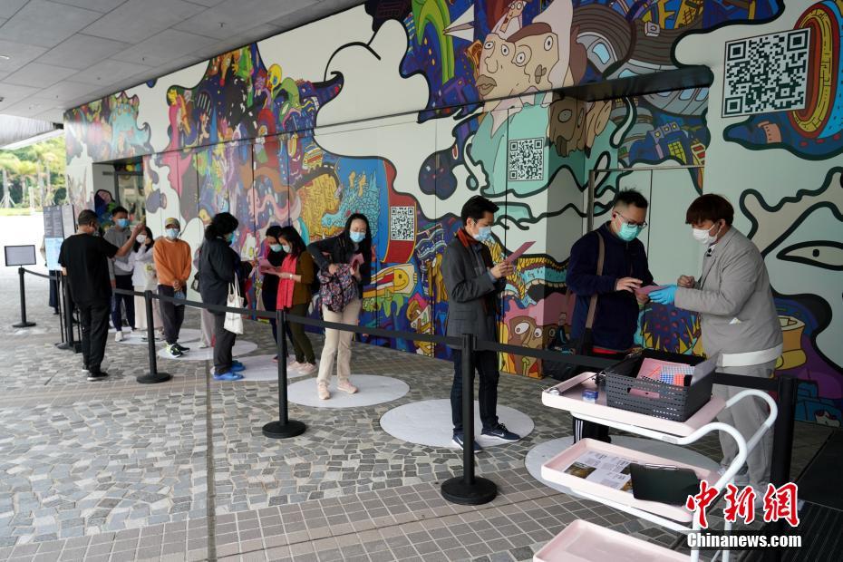 香港艺术馆向排队等候的观众派发入场筹码。中新社记者 张炜 摄