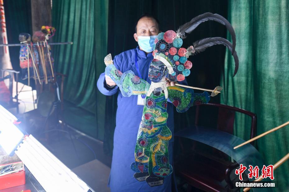 表演者王碧元展示皮影。中新社记者 杨华峰 摄