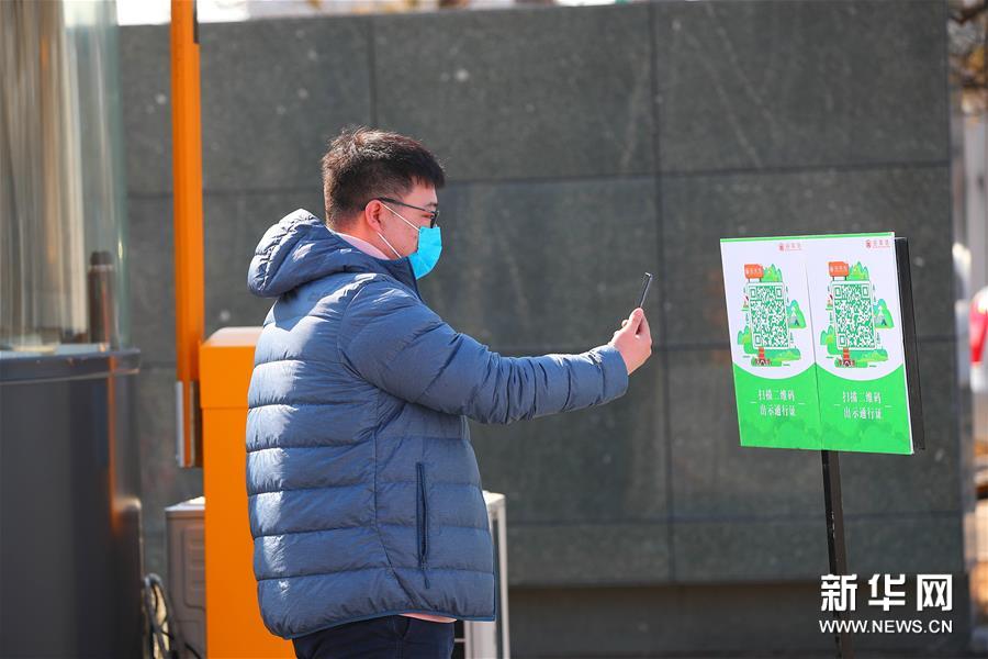 3月17日,观众在进入沈阳“九一八”历史博物馆前扫描二维码。新华社记者龙雷摄