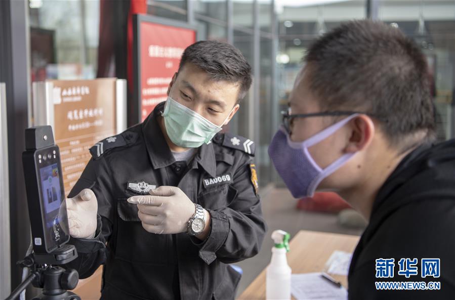 3月23日,读者在工作人员的引导下接受体温测量。 当日,山西省图书馆重新对外开放,读者进馆前需要在线实名预约、接受体温检测并出示健康码。 新华社记者 杨晨光 摄