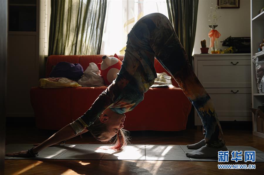 3月28日,在俄罗斯首都莫斯科,瓦列里娅在家中训练。 当日,莫斯科进入疫情防控假期第一天。由于所在的剧院因疫情关闭,31岁的芭蕾舞演员瓦列里娅·波别金斯卡娅不得不居家训练。俄总统普京25日发表电视讲话,宣布3月28日至4月5日全国放假,以防止新冠病毒在俄境内大规模传播。 新华社发(叶甫盖尼·西尼岑摄)