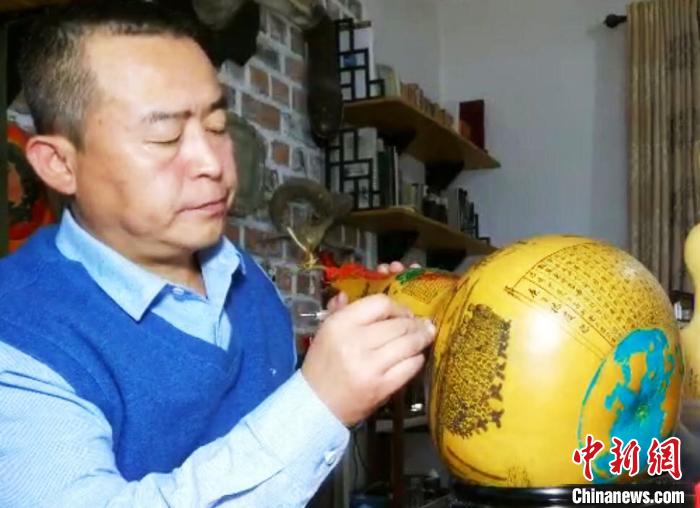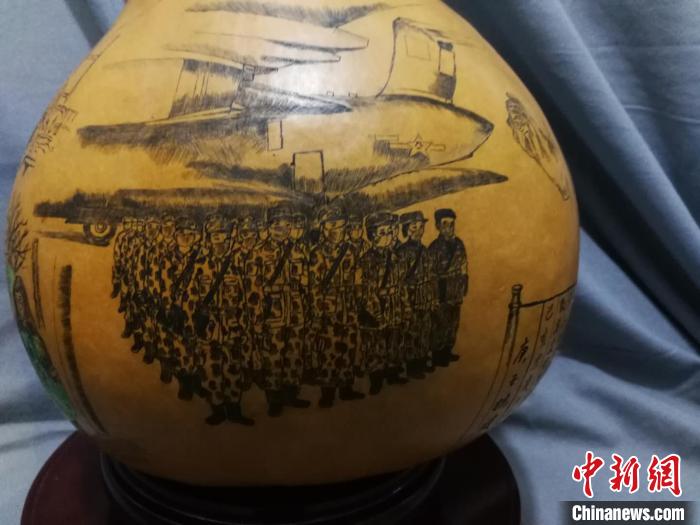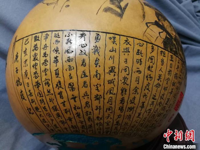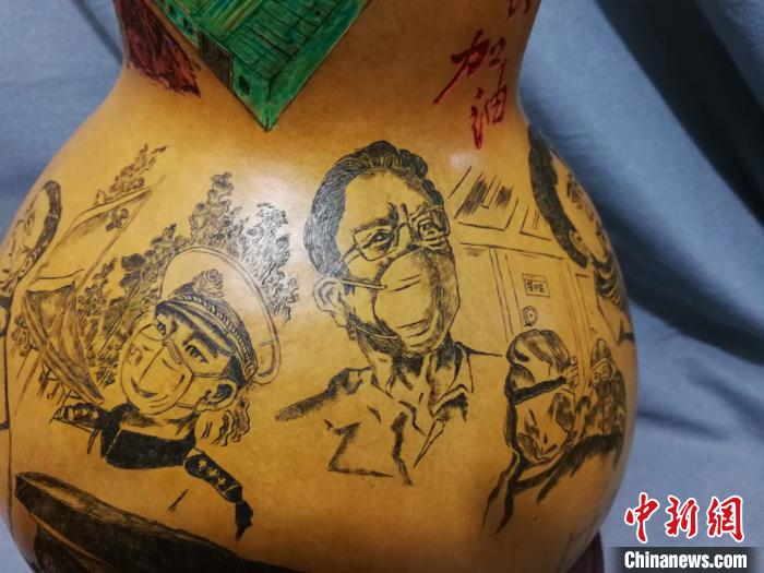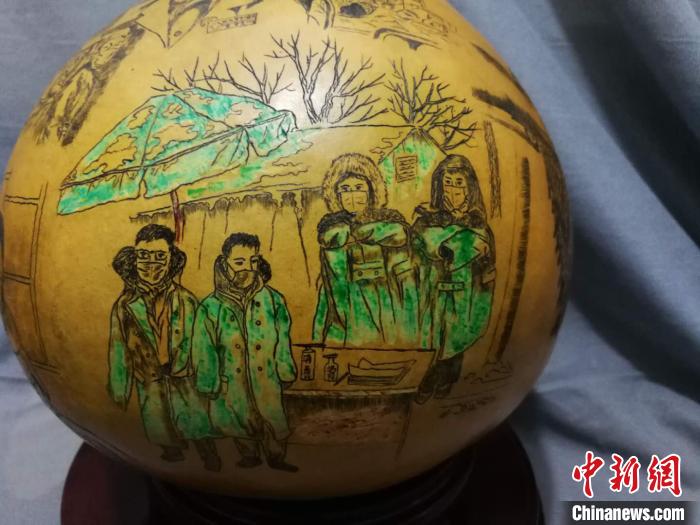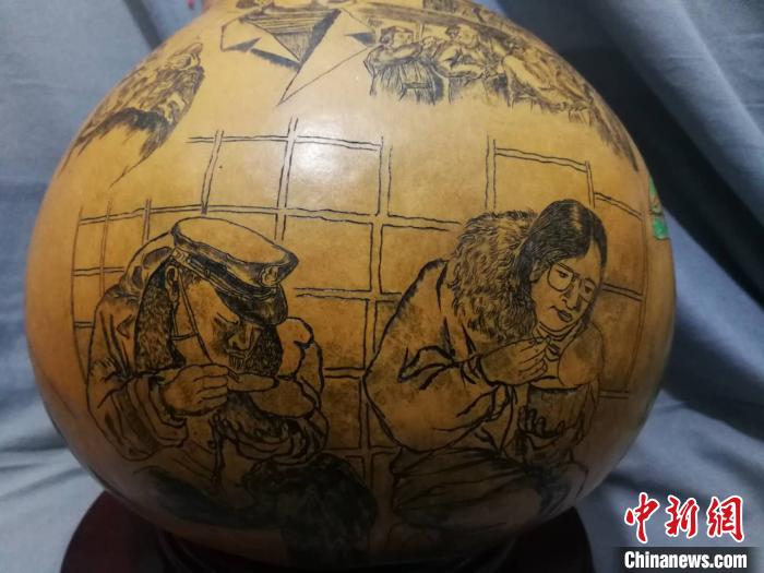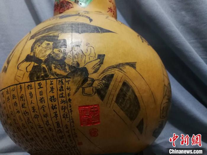 近日,兰州民间艺人王立荣耗时近一个月,在葫芦上微雕完成战“疫”百态图。 徐雪 摄