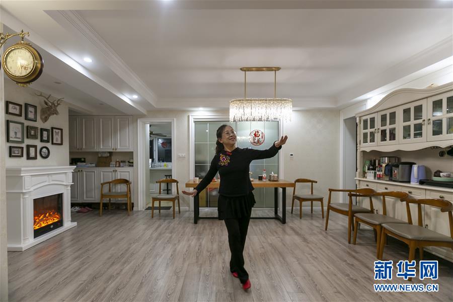 舞蹈队成员顾淑卓在家中练舞(3月29日摄)。 “鸿雁舞蹈队”是上海市闵行区古美街道的一个市民舞蹈团。受新冠肺炎疫情影响,舞蹈队成员们无法参与舞蹈集中排练,只能“宅”在家中练习舞蹈。日前,队员们正在家中加紧练习网上新学的舞蹈。 新华社发(王翔 摄)