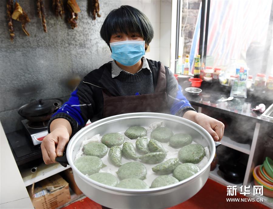 4月2日,黄山市徽州区西溪南村村民将做好的清明粿端出锅。新华社发(周牧摄)
