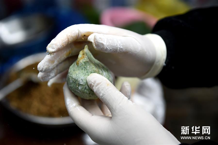4月2日,黄山市徽州区西溪南村村民在制作清明粿。新华社发(周牧摄)