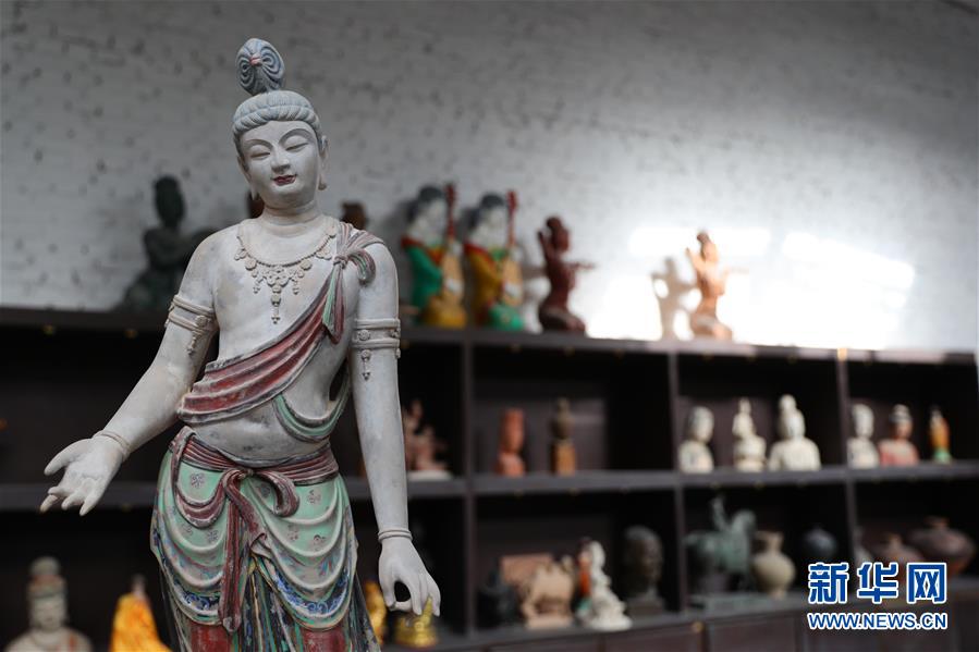 这是杜永卫工作室内陈列的敦煌彩塑成品(4月5日摄)。 新华社发(杜哲宇 摄)