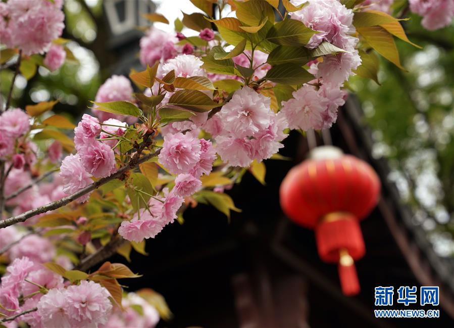 在位于上海松江的江南古典园林——醉白池,晚樱盛放(4月6日摄)。 清明假期,上海的古典园林景点在做好防疫措施的同时,有序开放运营。在粉墙黛瓦、春色满园中,游人们欣赏浓浓春意,感受古色古香。 新华社记者 刘颖 摄
