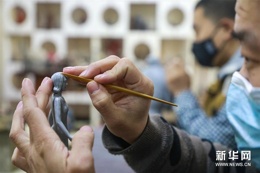 随着疫情防控形势持续向好,河北省石家庄市多名非遗手工艺人在做好防护的同时,在家赶制定制手工艺品,通过互联网销往全国各地。 新华社发(刘沛然 摄)