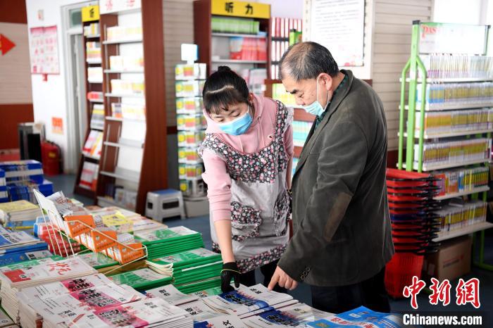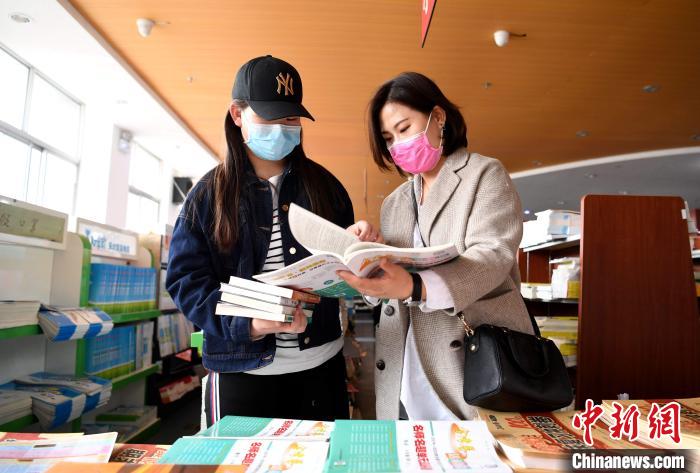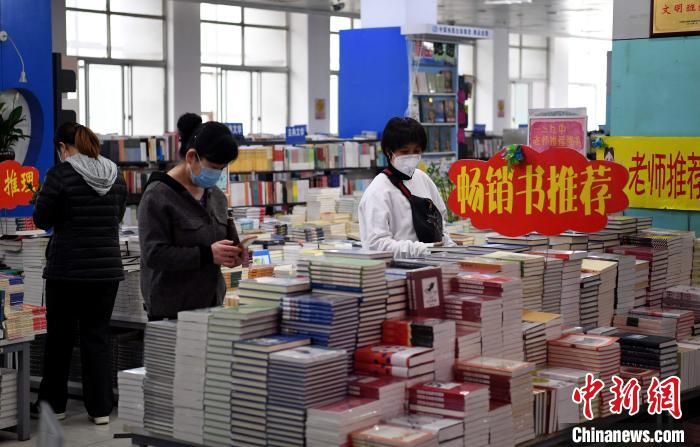国内新冠肺炎疫情逐步向好,宁夏已连续34天无新增确诊病例,民众生活也逐渐恢复常态,多地书店陆续恢复营业。4月7日,记者在银川市一家新华书店看到,读者展示绿色健康码、测体温、酒精消毒后,可在工作人员的引导下分散进入书店。目前,各书店暂不允许长时间在店内阅读,但可进行正常购书。因此,教辅类书籍广受追捧。广大在家通过网络上课的学生与家长,纷纷在书店购买教辅材料辅助学习。(李佩珊)