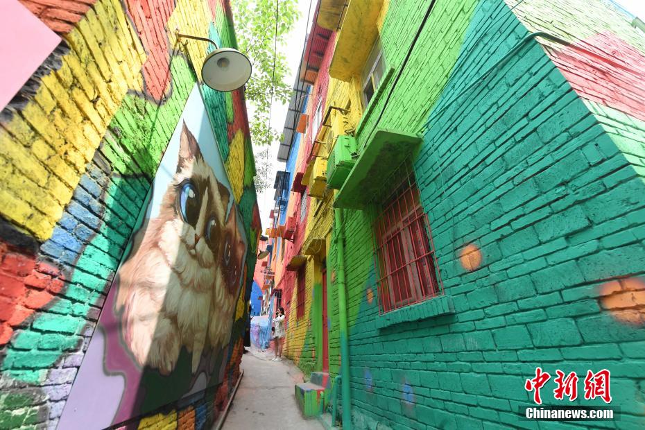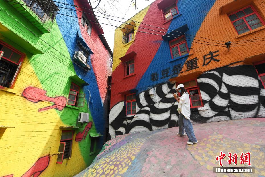 重庆老旧楼房涂鸦换“新衣” 色彩艳丽吸眼球