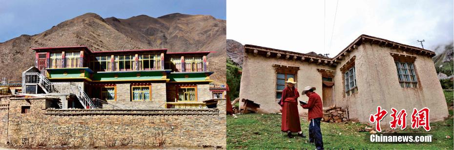 图为重建后(左)与震前(右)的青海玉树州民众住房。青海省自然资源厅 供图