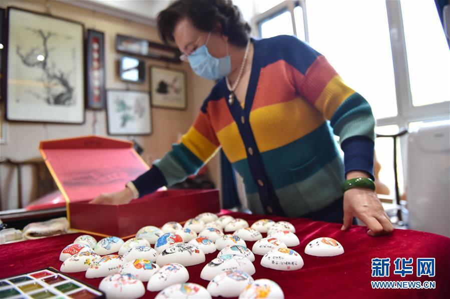 4月21日,赵伟展示疫情期间创作的彩蛋作品。 彩蛋绘制是北京的传统民间手工艺,2009年被列入北京市西城区非遗保护项目。它是在禽类蛋壳上创作工艺画,结合雕刻、刺绣等,难度大,艺术风格独特。年过花甲的赵伟是彩蛋绘制技艺传承人,新冠疫情发生后,赵伟创作了一批以抗击疫情为主题的彩蛋作品,传递“正能量”。 新华社发(陈钟昊 摄)
