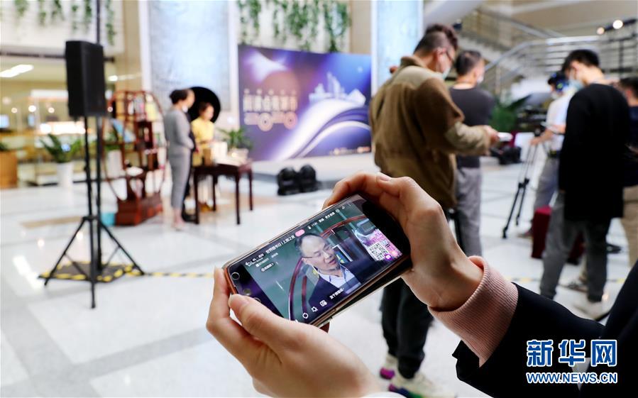 4月23日,工作人员通过手机直播平台查看直播效果。 当日是世界读书日,上海图书馆通过网络平台直播“上图之夜——阅读点亮城市”活动,受邀嘉宾通过网络与广大读者话读书,开启一场别开生面的云上交流。 新华社记者 方喆 摄