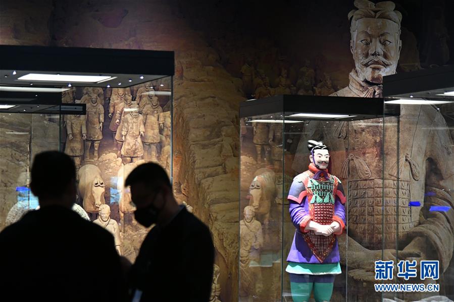 4月24日,工作人员在山东博物馆布展。 山东博物馆年度特展“六合同风——秦文化大展”即将展出,目前工作人员正在紧张布展中。本次展览除展出秦始皇兵马俑实物外,还集合了全国25家文博单位的140多件组精品文物,为参观者献上一场文化盛宴。 新华社记者 朱峥 摄