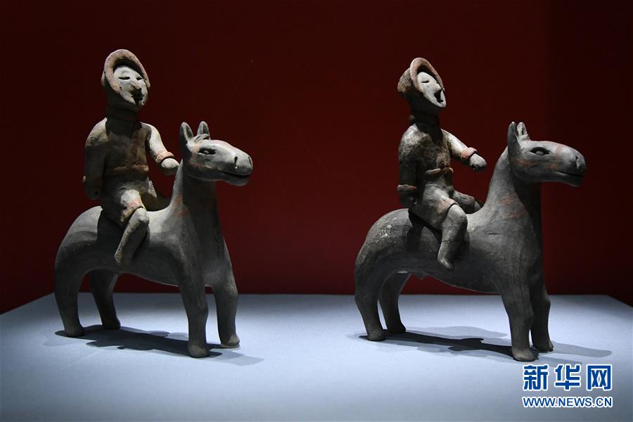这是展出的骑马俑(4月24日摄)。 山东博物馆年度特展“六合同风——秦文化大展”即将展出,目前工作人员正在紧张布展中。本次展览除展出秦始皇兵马俑实物外,还集合了全国25家文博单位的140多件组精品文物,为参观者献上一场文化盛宴。 新华社记者 朱峥 摄