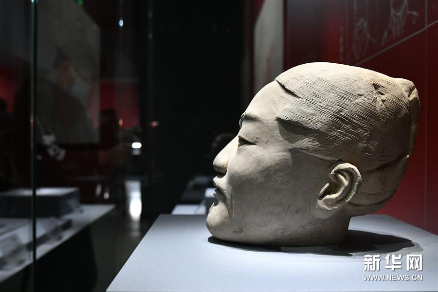 这是展出的武士俑头部(4月24日摄)。新华社记者 朱峥 摄