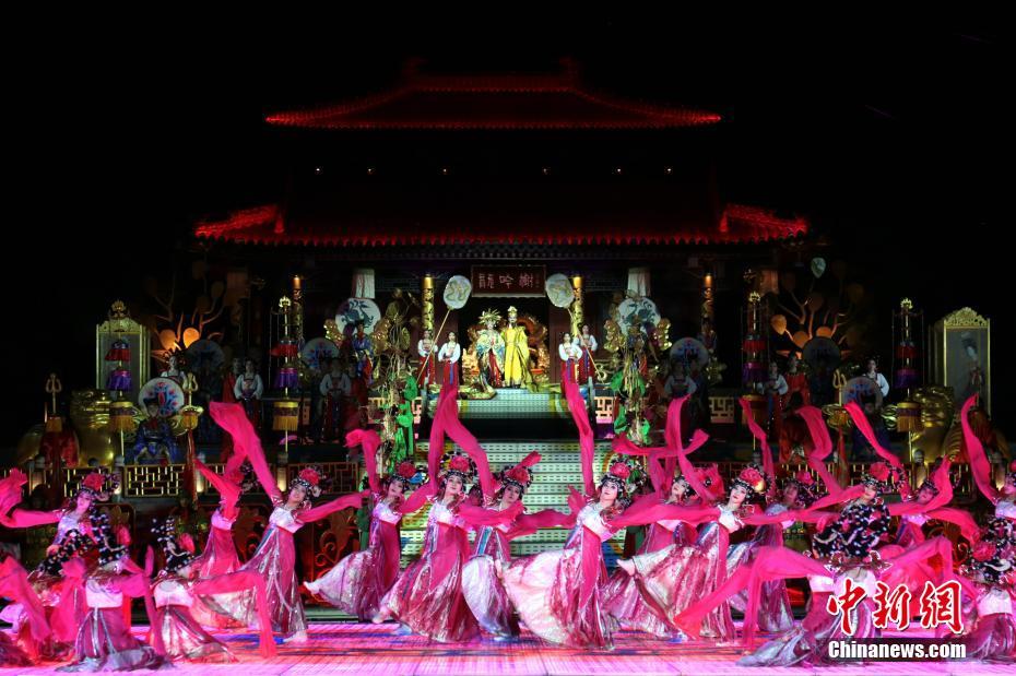 4月26日,2020年“礼赞楷模·致敬英雄”公益专场活动暨《长恨歌》演出季首演启动仪式在陕西西安华清宫举行。本次活动旨在向援鄂医护人员、防疫一线医护人员和广大公安干警、建设者、志愿者致以崇高的敬意。同时宣告2020年大型实景历史舞剧《长恨歌》正式回归、开始演出。中新社记者 张远 摄