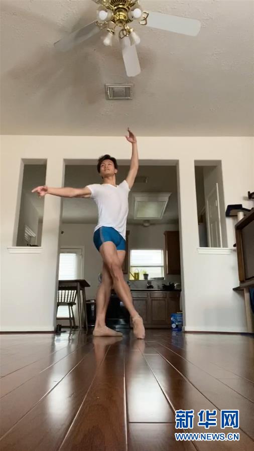 这是美国休斯敦芭蕾舞团首席演员陈镇威在休斯敦家中开设的舞蹈网课中教学的资料视频截图。 新华社发
