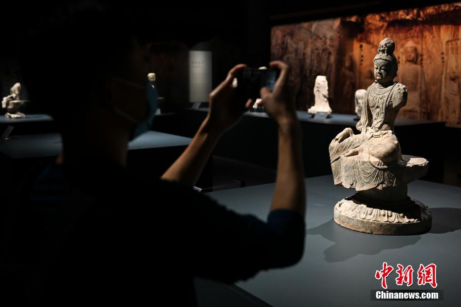 观众在广东省广州市天河区的广东省博物馆参观“魏唐佛光——龙门石窟精品文物展”。中新社记者 陈骥旻 摄