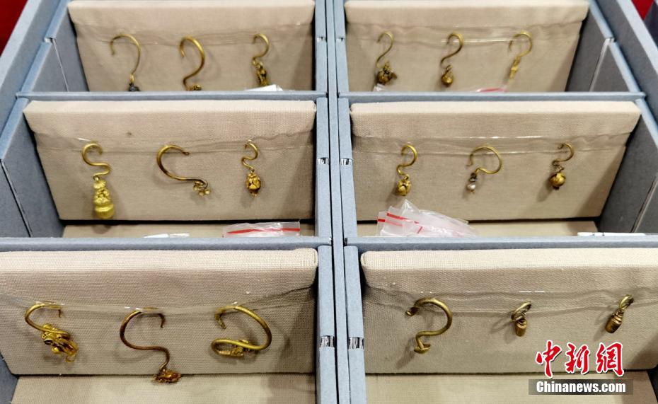 考古发掘出水的金耳环饰品。刘忠俊 摄