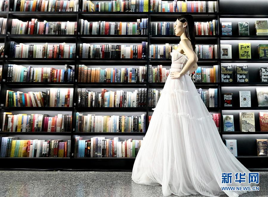 5月5日,模特在北京坊Pageone书店举行的中国国际时装周(2020/2021秋冬系列)“Beauté Comme Toi·姜月&CLEANFLOW·陈文熙”时装秀上展示时装。 新华社记者 陈建力 摄