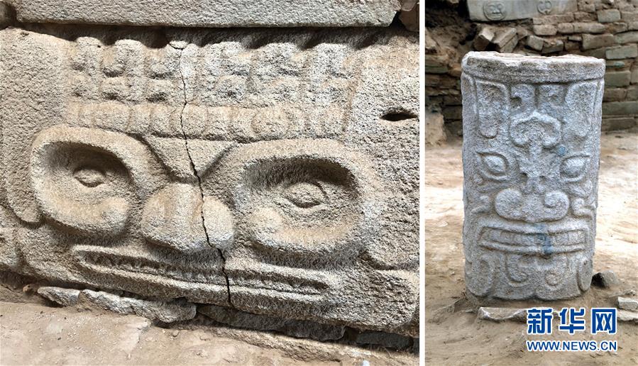 陕西神木石峁遗址皇城台出土的石雕(拼板资料照片)。新华社发(中国文物报社供图)
