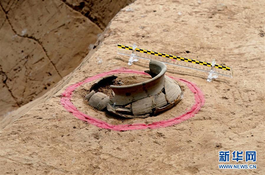 这是4月28日拍摄的双槐树遗址内用陶罐模拟的北斗九星天文遗迹。 新华社记者 李安 摄