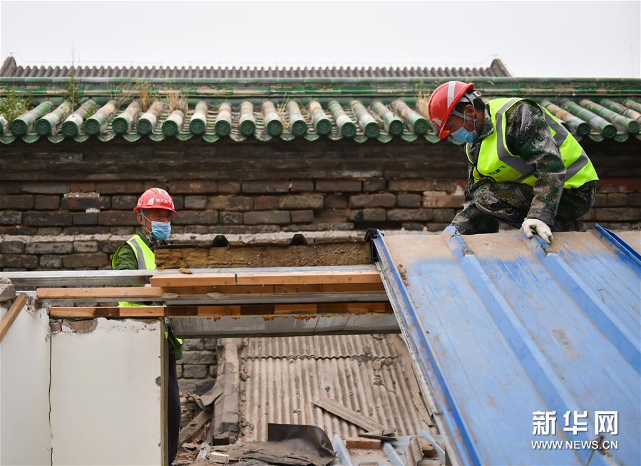 5月7日,工人在皇史宬南院内拆违。新华社发(陈钟昊摄)