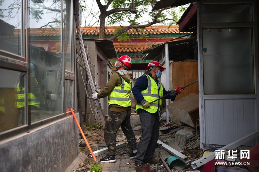 5月7日,工人在皇史宬南院内拆违。新华社发(陈钟昊摄)
