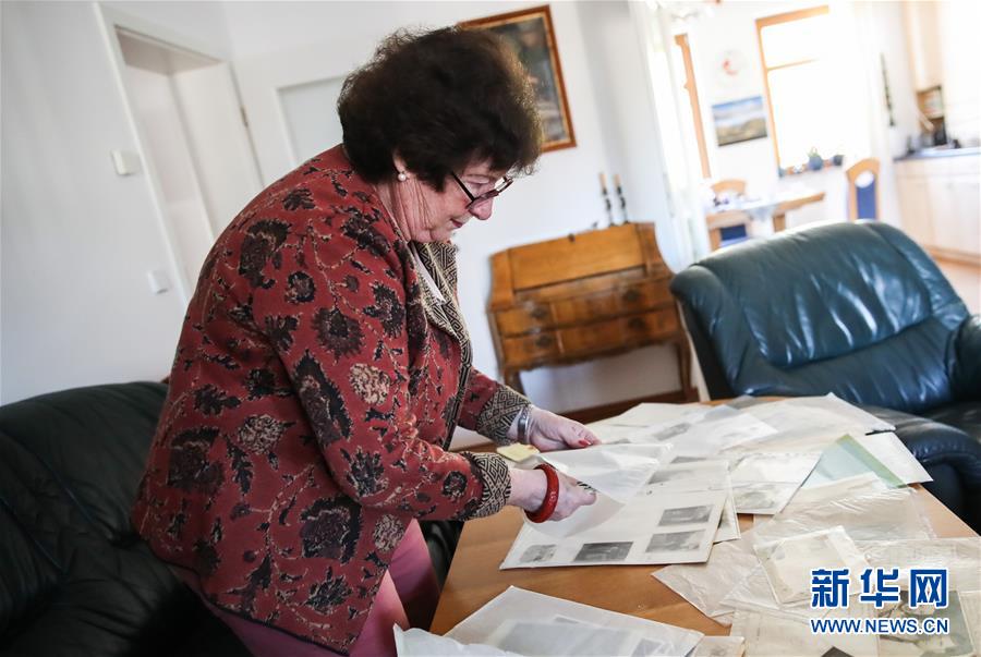 4月23日,索尼娅·米尔伯格在位于德国柏林东郊一个小镇的家中查找她收藏的照片和档案。 新华社记者单宇琦摄