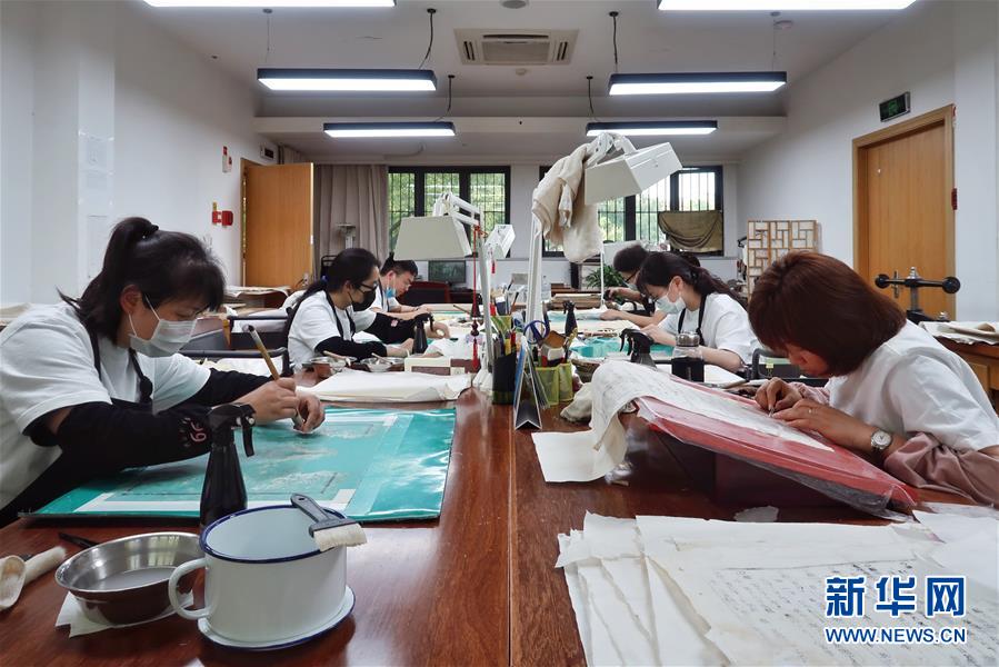 5月13日,古籍修复师在对书页进行修复。 天一阁藏品修复部目前有修复师14人,每年约修复古籍14000余页。据介绍,修复一册古籍通常需要1至2个月,有的甚至需要1年以上。 新华社记者 郑梦雨 摄