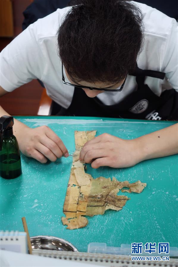 5月13日,古籍修复师在对书页进行修复。 天一阁藏品修复部目前有修复师14人,每年约修复古籍14000余页。据介绍,修复一册古籍通常需要1至2个月,有的甚至需要1年以上。 新华社记者 郑梦雨 摄