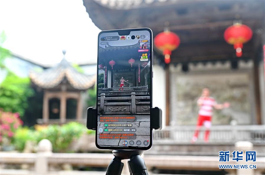 5月19日,工作人员在福州历史文化街区三坊七巷进行文艺表演直播。 当日是中国旅游日,福州推出“云游坊巷”专题直播活动,让各地游客通过网络“云游”福州古厝和坊巷等。 新华社记者 林善传 摄
