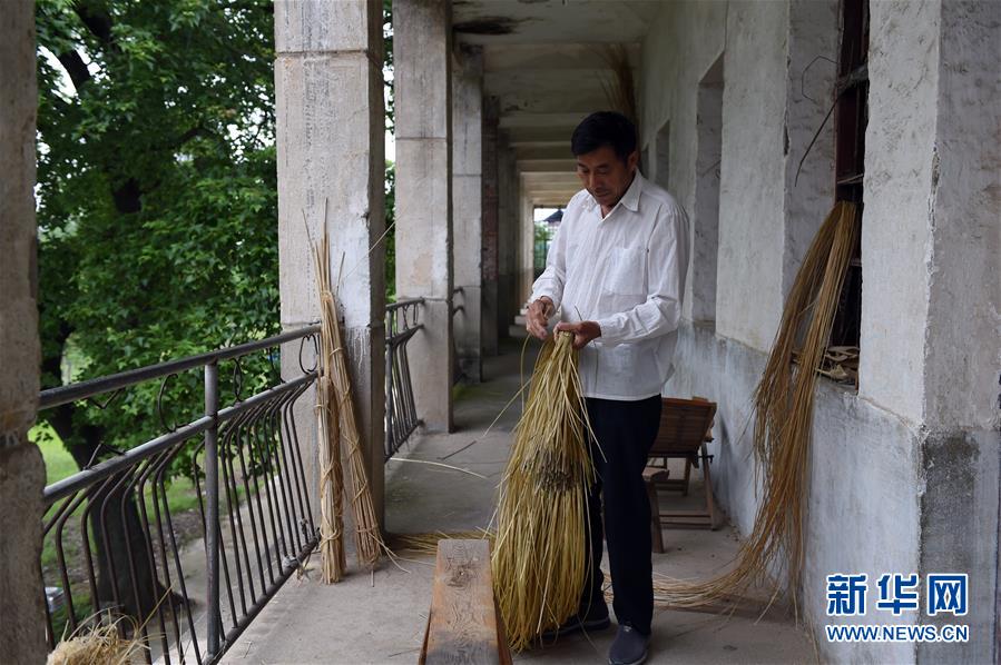 5月21日,农户在潜山市王河镇的舒席就业扶贫车间整理加工完成的篾条。篾条是制作舒席的原料。新华社发(周牧摄)
