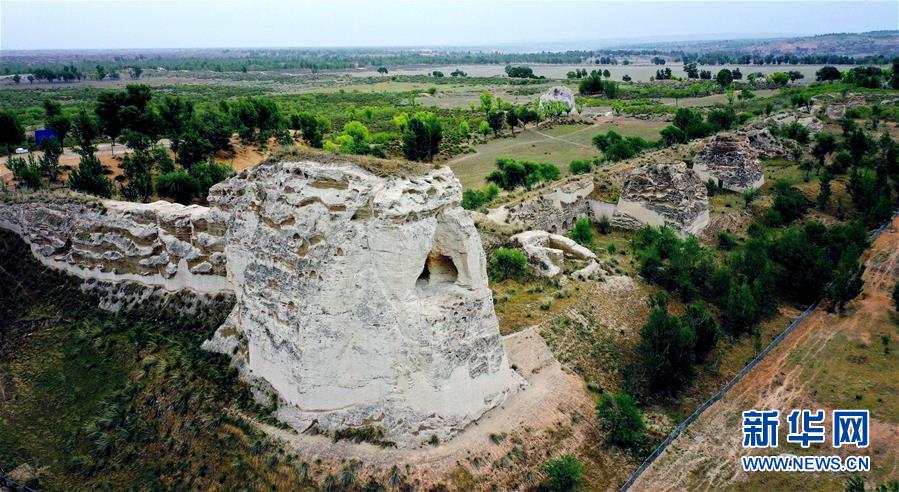 统万城保留最完整的一段城墙遗址(5月30日摄,无人机照片)。