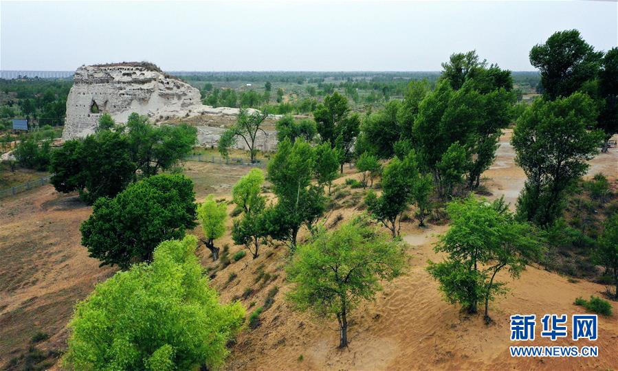 统万城西南角城台遗址(5月30日摄,无人机照片)。新华社记者 刘潇 摄