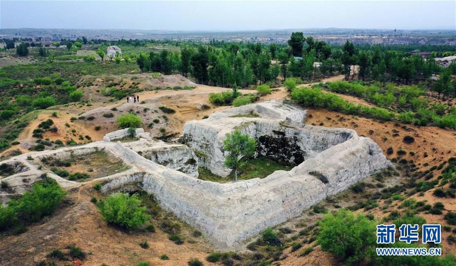 统万城西门及瓮城遗址(5月30日摄,无人机照片)。新华社记者 刘潇 摄